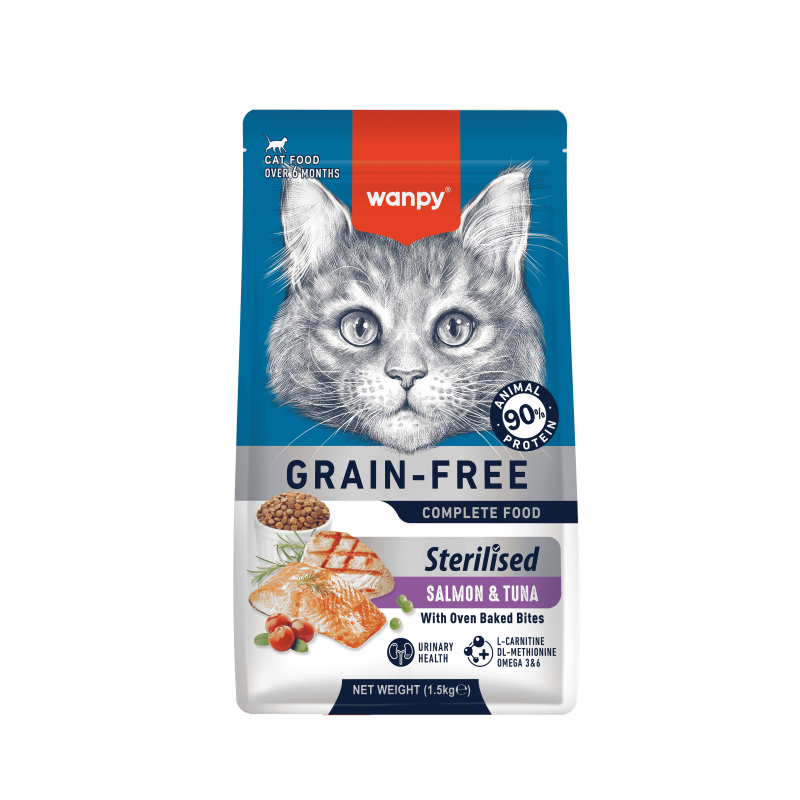 Wanpy Croquettes Sans Céréales au Thon et Saumon pour Chat Stérilisé 1.5kg